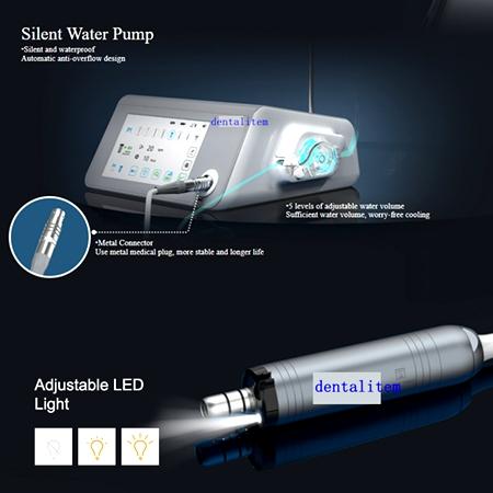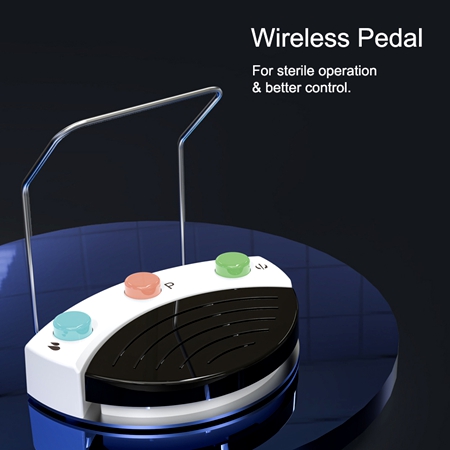 Easily control the mode, function, water output, Handpiece light output, and direction using the large touch screen display. Program function, Water, and LED light can also be controlled via the Wireless pedal.